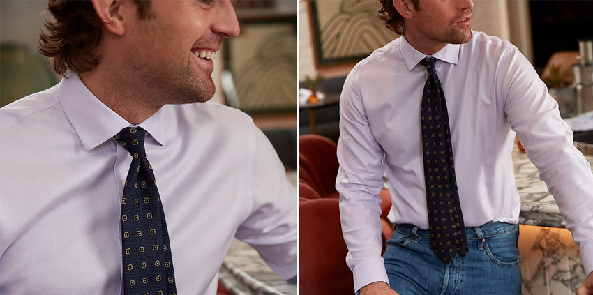 Điều đầu tiên cần lưu ý là loại cà vạt phải phù hợp với kiểu áo sơ mi bạn mặc. Cà vạt bản rộng thường hợp với áo sơ mi cổ rộng, trong khi cà vạt bản hẹp thích hợp với áo sơ mi cổ hẹp. Để tránh sự “đụng độ” giữa họa tiết cà vạt và áo sơ mi, hãy chọn mặc áo sơ mi trơn, đeo cà vạt có họa tiết và ngược lại.