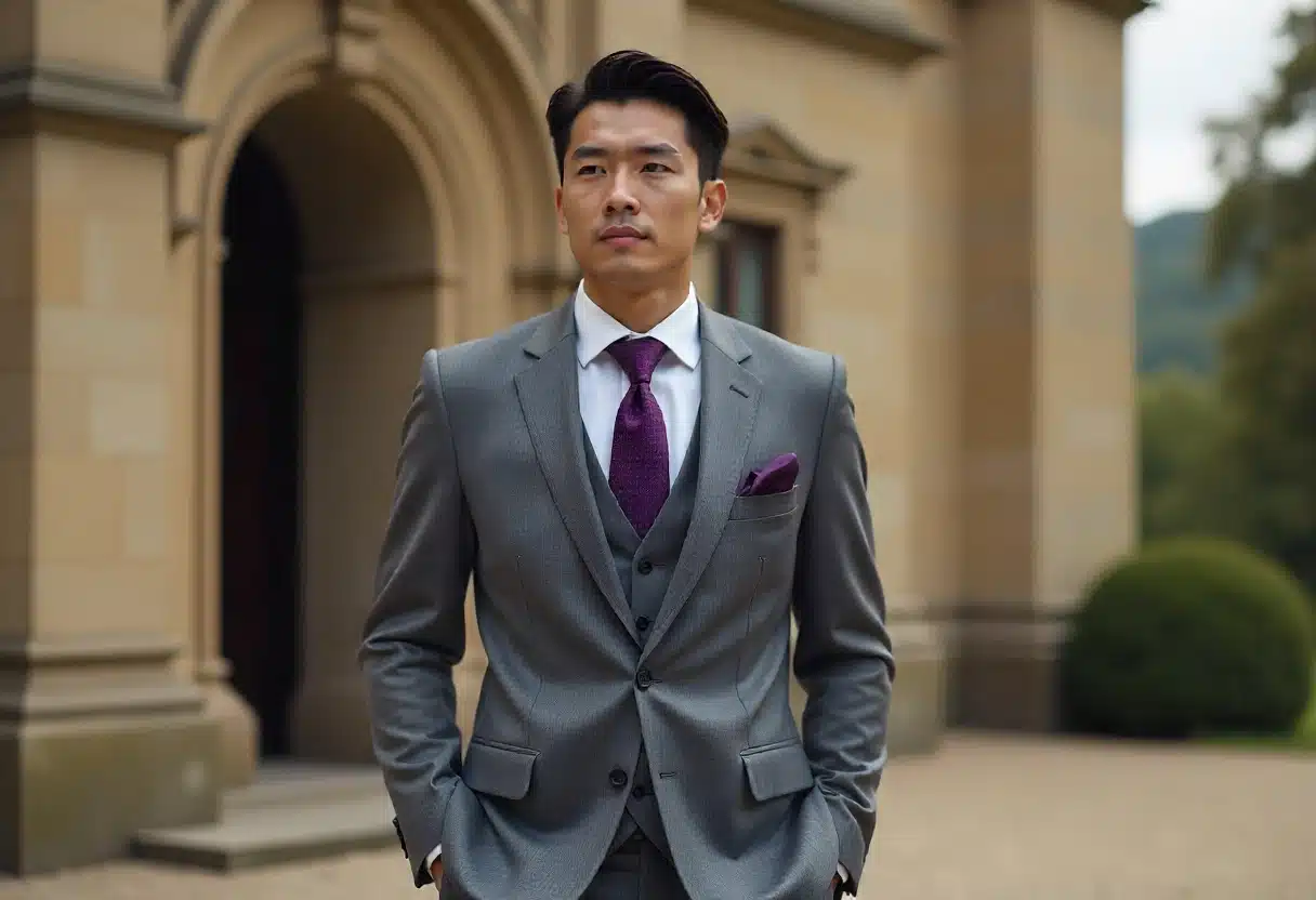Ra đời cùng lounge suit thập niên 1920, xám charcoal là lựa chọn “nghiêm nghị” thay đen.