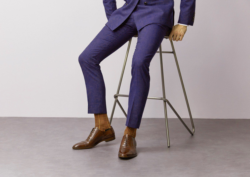 Giày brogue có nhiều tông màu nâu khác nhau, màu nâu sậm mang lại sự linh hoạt trong khi những đôi giày nâu nhạt là lựa chọn tốt cho áo com lê xanh dương và nâu.