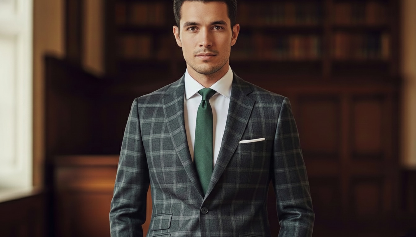 • Màu sắc: Nếu bộ suit có họa tiết kẻ ô, hãy chọn cà vạt trơn màu đậm như đỏ đô (Burgundy) hoặc xanh emerald để cân bằng.