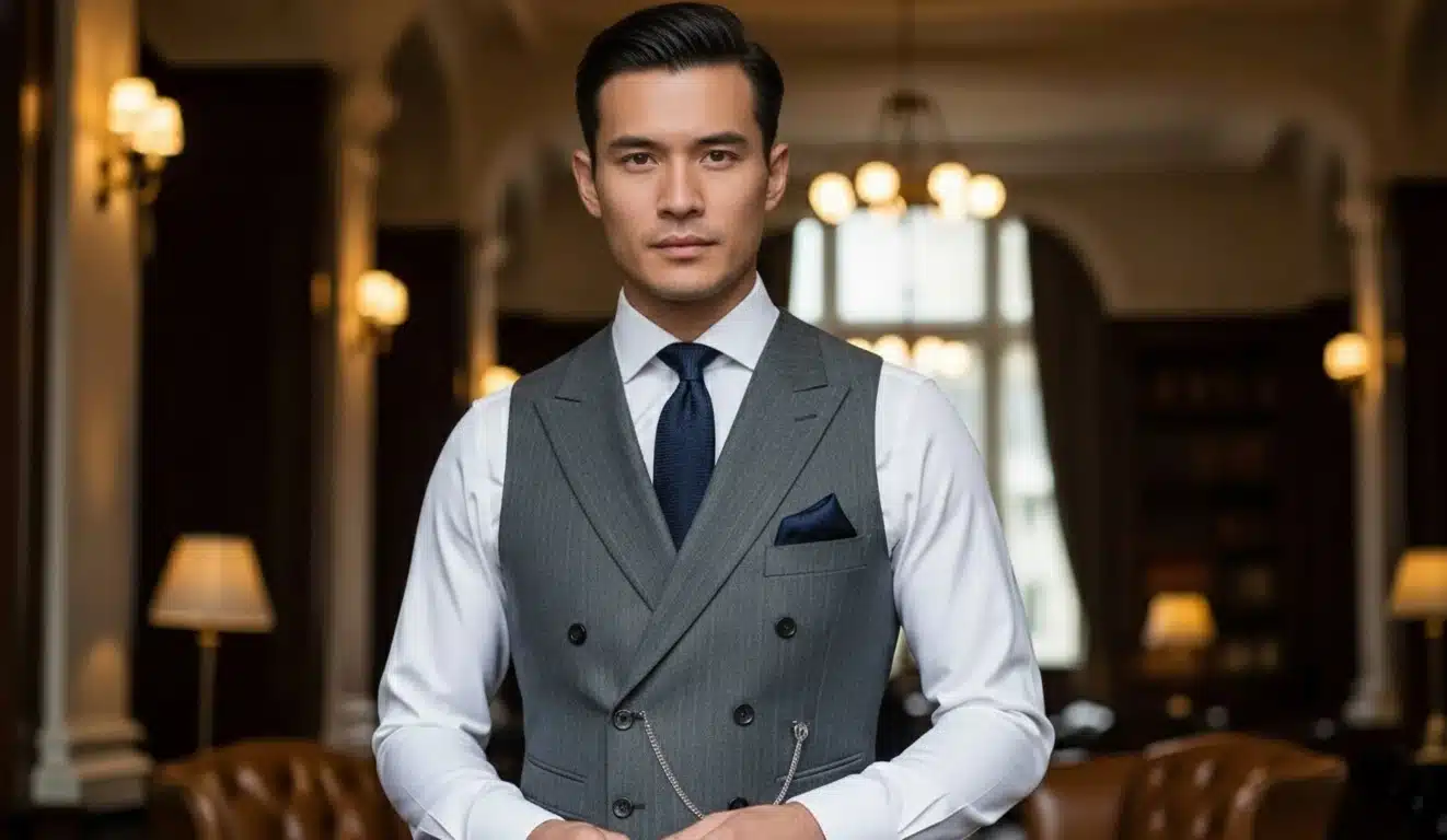 5. Áo Gile Hai Hàng Khuy: Giữ Vẻ Trịnh Trọng Mà Không Cần Áo Khoác