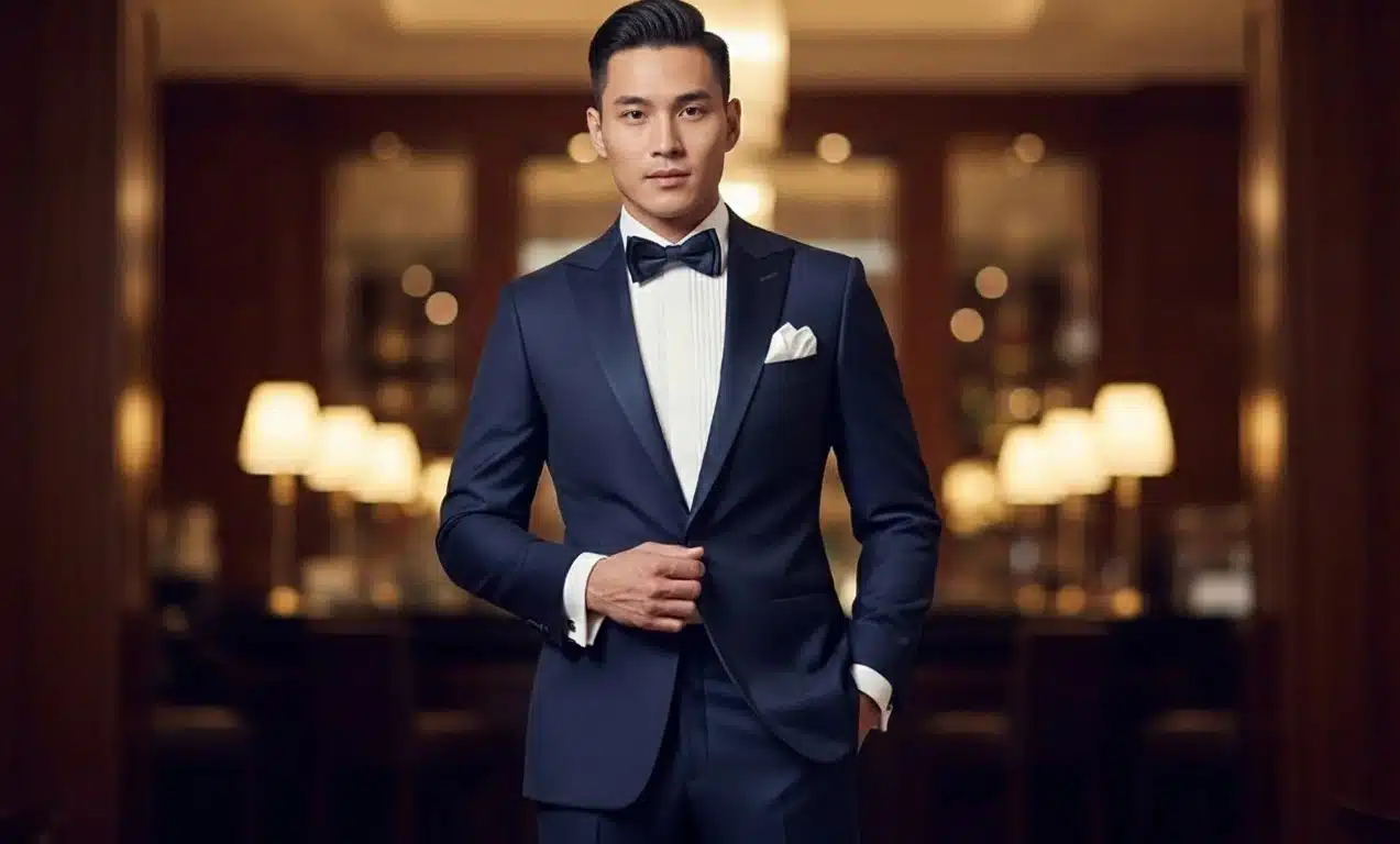 Tùy thuộc vào địa điểm tổ chức, bạn có thể chọn một bộ Tuxedo (Black Tie) cho những lễ cưới xa hoa tại khách sạn 5 sao để thể hiện sự quyền quý. Ngược lại, những bộ Suit Cocktail với màu sắc nhẹ nhàng và chất liệu thoải mái sẽ là lựa chọn hoàn hảo cho những không gian tiệc cưới hiện đại, ấm cúng.