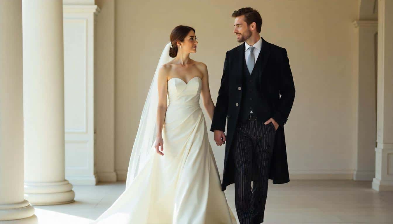 Đám cưới diễn ra vào ban ngày, quy tắc trang phục formal sẽ cần một bộ trang phục cưới phù hợp với áo khoác ngoài đuôi dài, mặc cùng với áo ghi lê và quần tây trang trọng. Bạn có thể thấy lạ lẫm với trang phục kiểu này nhưng ở các nước như Anh Quốc, đây là quy tắc ăn mặc được tuân thủ nghiêm ngặt. Tổng quan, trang phục cưới mùa đông vào ban ngày bao gồm: